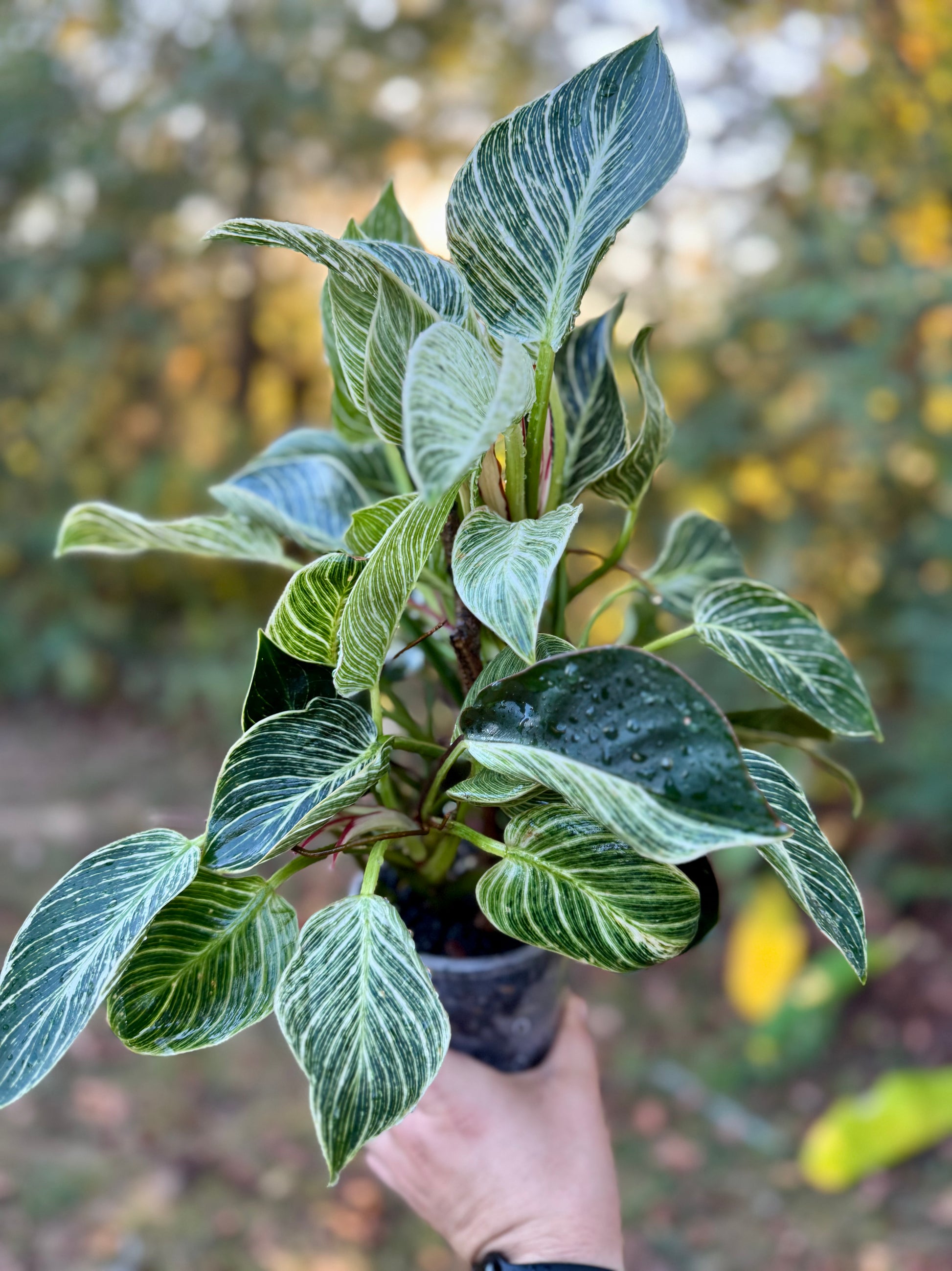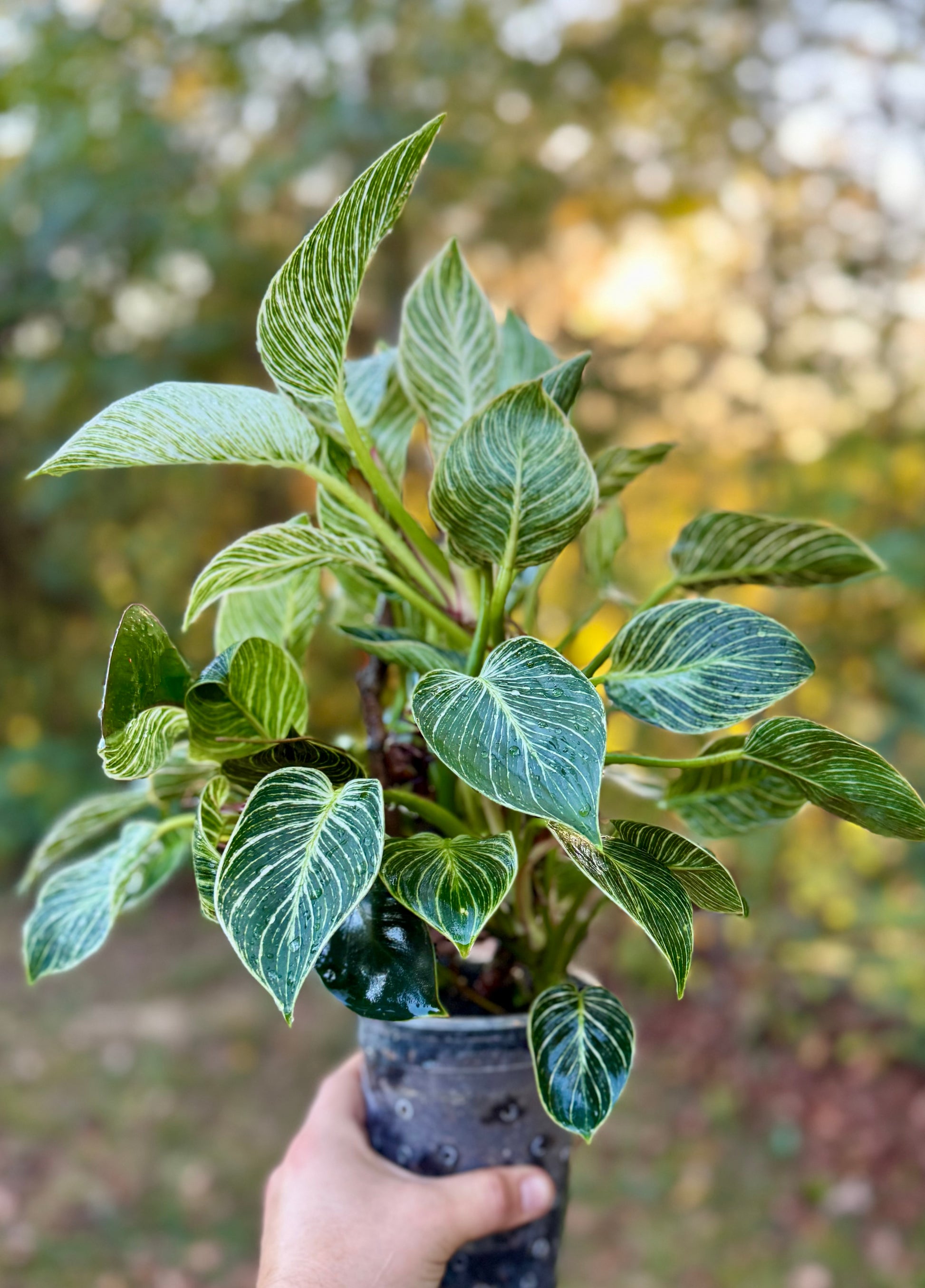 Origin: The 'Birkin' is a relatively new and unique hybrid, believed to be a spontaneous mutation of Philodendron'Rojo Congo'.